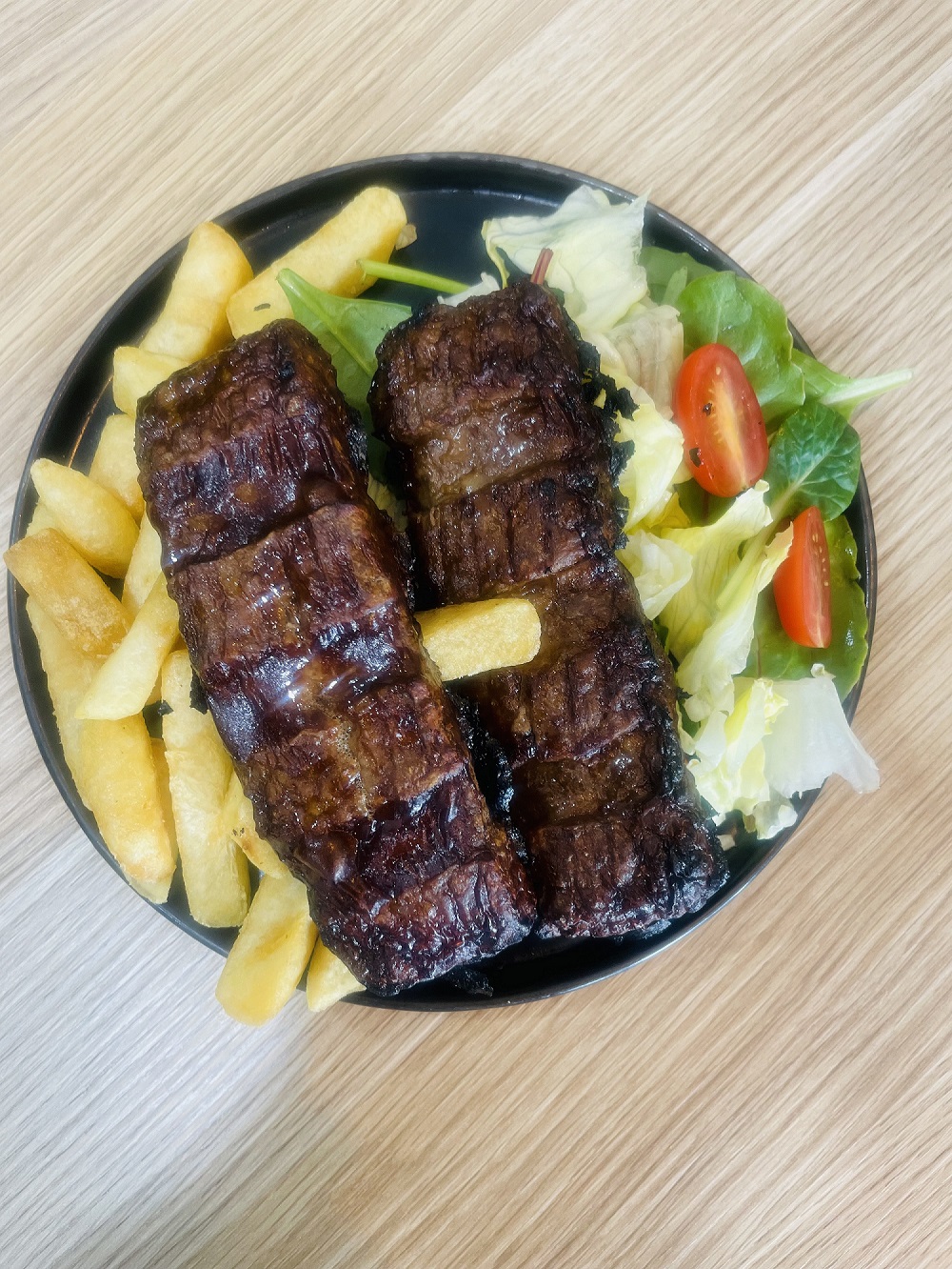 Pork riblets with salad and chips$14.95×
